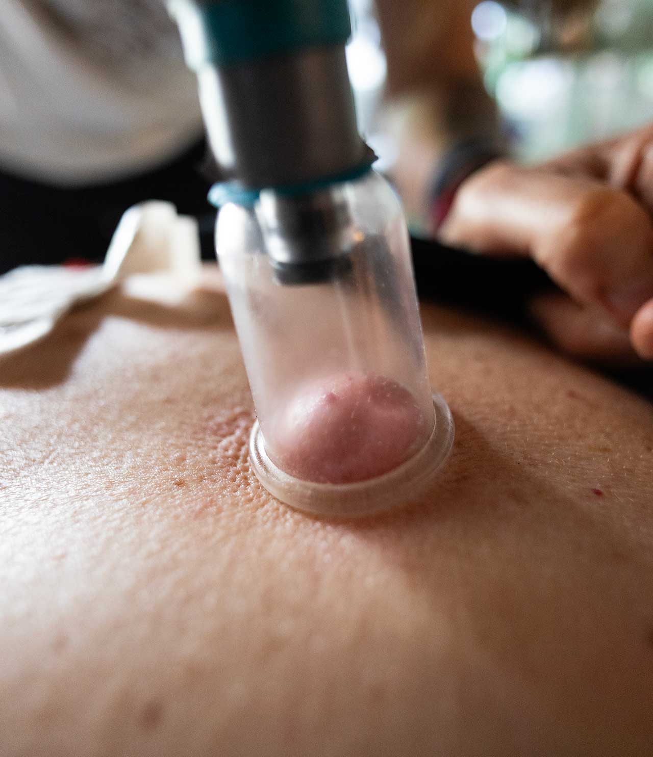 Si basa sul posizionamento a ventosa di coppette di vetro o plastica sulla pelle, in punti specifici, in modo da creare il vuoto e una pressione localizzata.