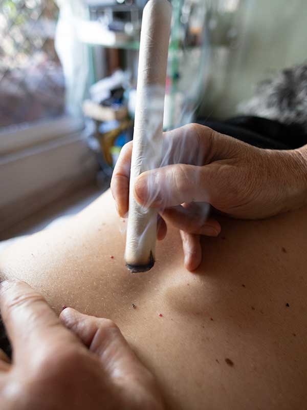 La parola Moxa deriva dal giapponese “moe kusa” e significa “erba che brucia”: proprio attraverso la sua combustione e l’utilizzo sapiente, si avvicina a punti specifici del corpo che corrispondono a quelli dell’agopuntura per riequilibrare l’organismo nel suo complesso.